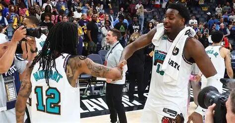 我们都知道他的成名时刻:2021年附加赛他35分淘汰勇士,对爵士季后赛第二场他轰下47分。次年对勇士第二场他又47分,成了科比和勒布朗之后,第二个23岁前就季后赛两次45分的球员。之后对勇士系列赛他受伤退出,但他所在的灰熊,依然是那年总冠军勇士最艰辛的对手。