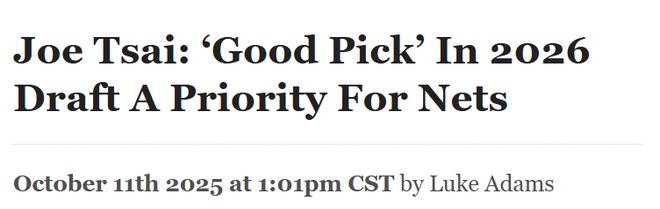 篮网在2023-24赛季取得32胜,2024-25赛季仅获26胜。尽管总经理马克斯坚称,对球队上赛季超出季前预期的表现感到满意,但他自去年12月以来的操作——包括交易走丹尼斯-施罗德、芬尼-史密斯和卡梅隆-约翰逊等老将——似乎表明,他并不介意篮网本赛季多输几场球,以便在2026年选秀抽签中获得比第8顺位更高的签位。