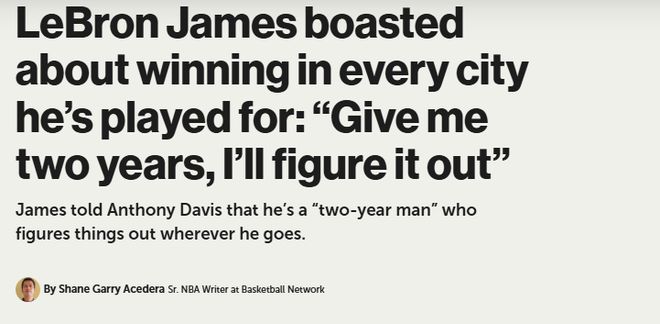 曝詹姆斯曾自称两年夺冠型球员 豪言在骑士热火湖人都该拿5亿合同